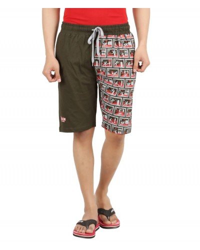 Sixer Green Cotton Printed Shorts